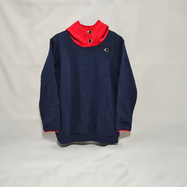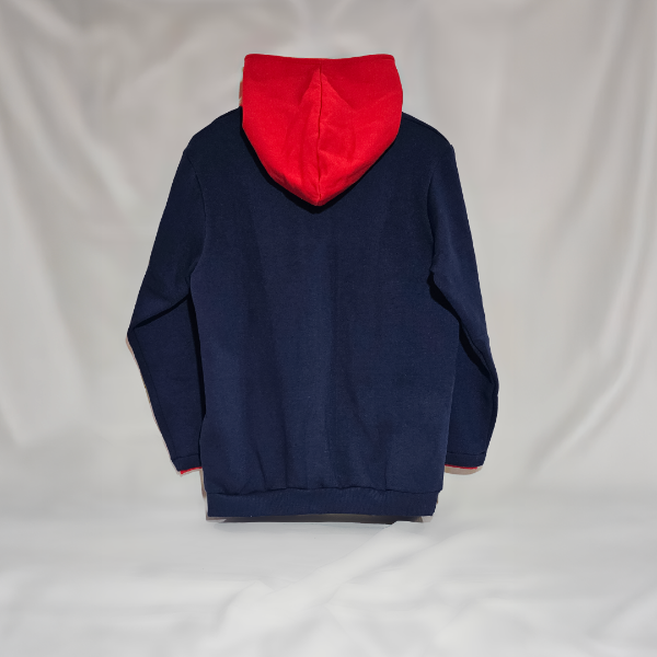Buzo confeccionado en frisa peinada invisible. Los botones de la capucha son funcionales, el del pecho es sólo de vista. Tiene bolsillos.