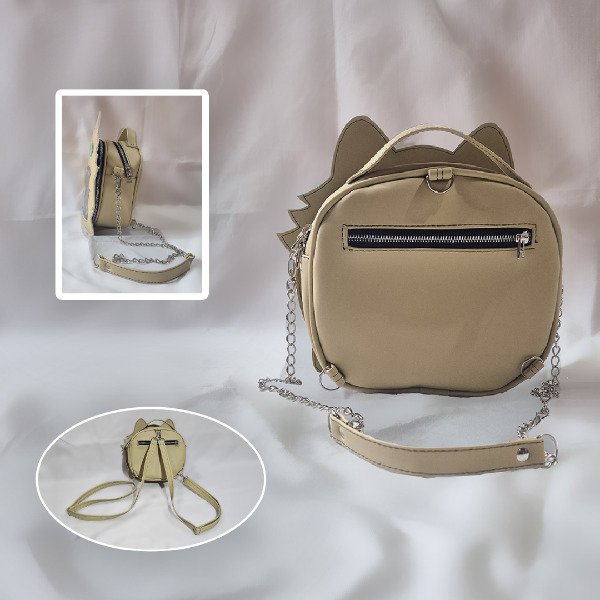 Bolso confeccionado en cuero sintético, cuenta con un espacio principal que mide 25 cm x 23 cm x 10 cm. Espacio extra en la parte de adelante con vista al frente para que puedas exhibir lo que quieras.
